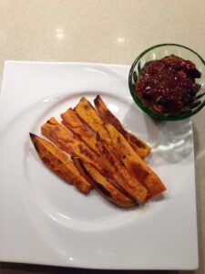 Spiced Up Sweet Potato Wedges with Cranberry Catsup